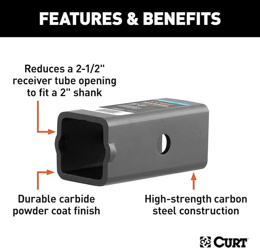 CURT 45405 Trailer Hitch Receiver Adapter Reducer Sleeve, 2-1/2 to 2-Inch, Carbide Black Powder Coat