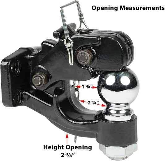 Mytee Products Pintle Hitch with 2-5/16-Inch Trailer Ball, 8 Ton Combination Hitch with Mounting Kit | Bolt On Adjustable Pintle Hook Ball Combo - Powder-Coated, Heavy-Duty