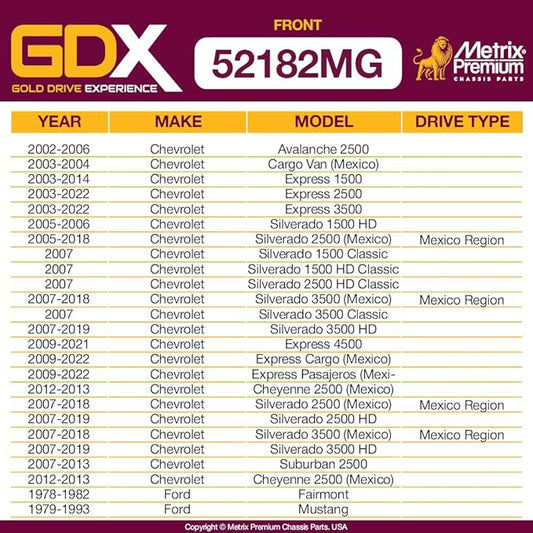 Metrix Premium Chassis Parts GDX - Front Sway Bar Stabilizer Bar Link Fits 99-00 Cadillac Escalade, 99-06 Chevrolet Silverado 1500, 07-19 GMC Sierra 3500 HD, K700539, K80631, Made in Europe