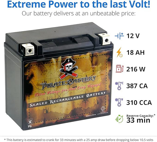 Pirate Battery YTX20HL-BS Maintenance-Free 12V 19Ah Battery Replacement for ATV, Harley Davidson Motorcycle, Jet Skis, Scooter, UTV, and More - Nut and Bolt (T3) Terminal