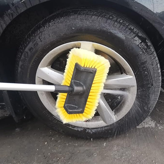 GIANT BEAR 10" Flow-Thru Penta-Level Car Wash Brush Head with Soft Yellow Bristles, Not Hurt Paint Scratch Free Cleaner Tool for Car Rv Truck SUV Deck Home Cleaning.