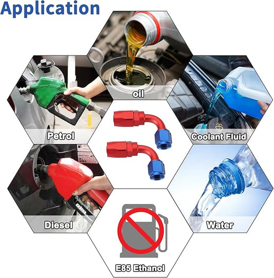 TOMALL 6AN 90 degree Hose End Fitting Swivel Aluminum 2PCS for Braided Fuel Oil Gas Line Hose End (RedBlue)