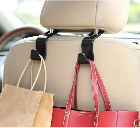 2 Car Seat Hooks Hanger Hooks - 2pc Headrest Hook Organizer in Black Metal - for Organizing Items on Car Seat