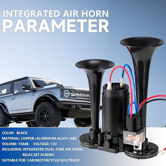 12V 150DB Air Horn for Truck for Train, Car Horns Loud with Compressor for Truck Boat Train Speaker Cars Van Ship (Black)