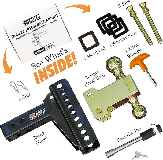 Adjustable Drawbar Trailer Hitch - 20,000 LBS, Fits 2 and 2-516 Inch Balls, US Gov Tested Certified, for RV Towing, Motorcycles Powersports