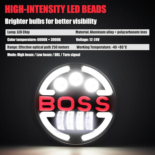 7 Inch Motorcycle LED Headlight Daymaker Compatible with Harley Davidson Touring Softail FLD (BOSS)