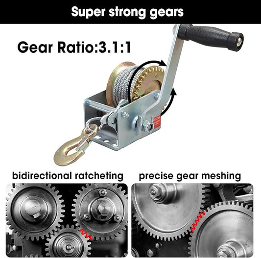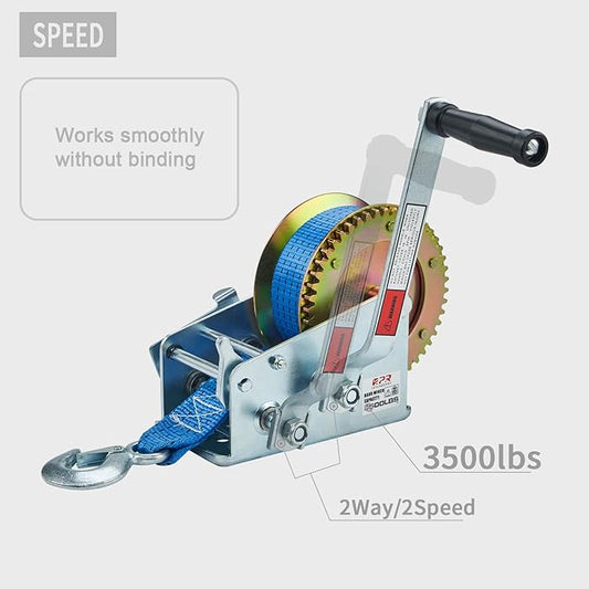 OPENROAD Boat Winch 3500lbs Hand Winch, with 32ft Blue Strap and 2 Speed switchable, for Boat Trailer Towing Winch