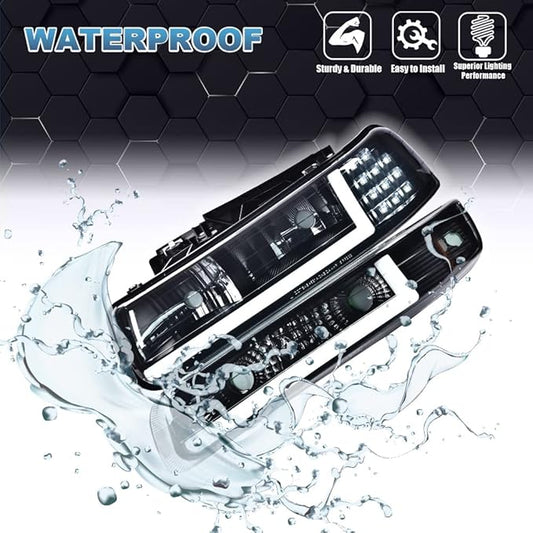 PIT66 LED DRL Headlights, Compatible with Chevy Silverado 1999-2002 Suburban Tahoe 2000-2006 Headlamp, Smoky lens Black Housing Amber Reflector