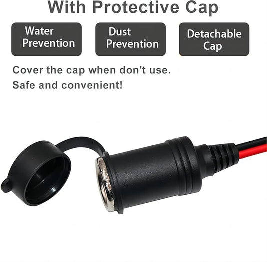 KUNCAN Cigarette Lighter Adapter - Female Socket to 12v Battery Alligator Clips for Auto Car Battery Clamp to Lighter Plugs Cigar Charge Extension Cable Cord 2FT
