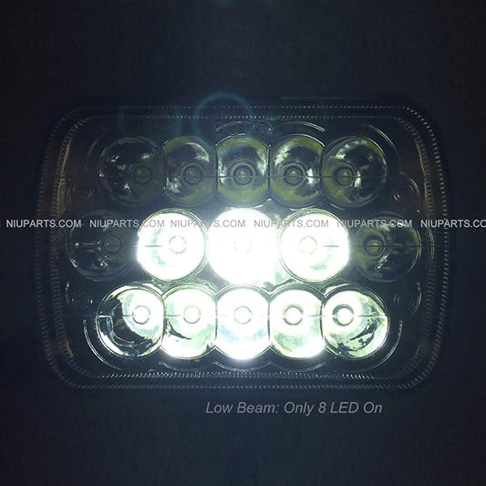 NIUPARTS 5"x 7" 15 LED Sealed High BeamLow Beam Headlight (Compatible with Universal and Various Other Trucks)