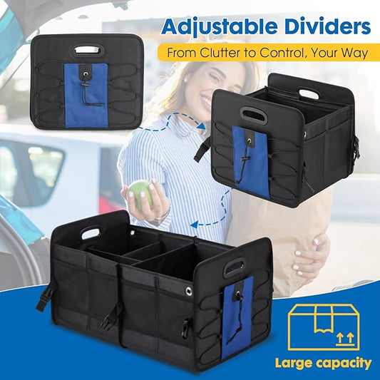 Large Car Trunk Organizer - Durable Oxford Cloth Car Storage Box with Flexible Dividers, Mesh Pockets Foldable Design for SUVs, Cars Groceries