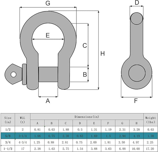 Leero 58" D Ring Shackles, 3.25 tons (7,165 Lbs) Working Load Limit, Clevis Shackle with 34" Alloy Screw Pin, Heavy Duty Shackles for Towing, Terrain Vehicle, Jeep, Trailer, Blue (2 Pack)