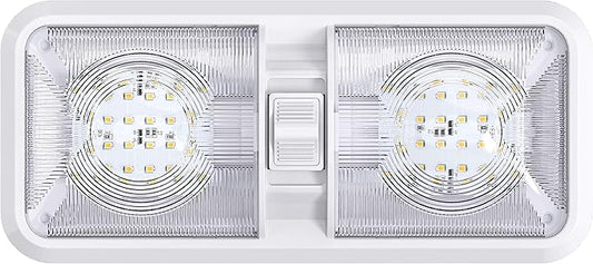 Leisure LED RV LED Ceiling Double Dome Light Fixture with ONOFF Switch Interior Lighting for CarRVTrailerCamperBoat DC 12V Natural White 4000-4500K 48X2835SMD Natural White 4000-4500K, (1 Pack)