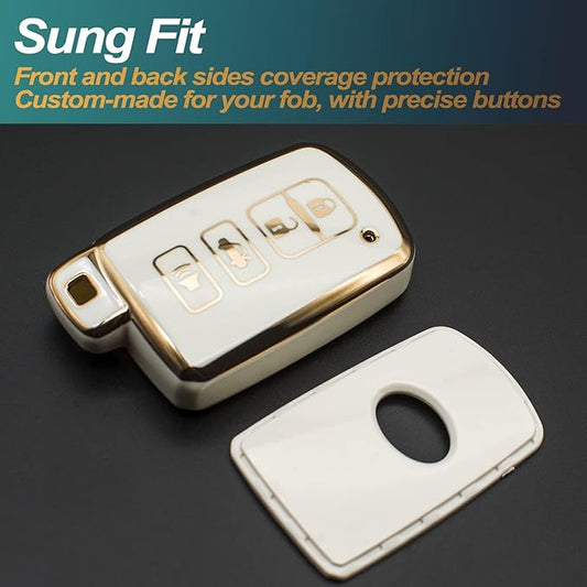 FEYOUN Key Fob Cover Compatible with Toyota Avalon Camry Corolla RAV4 Sequoia Highlander 4Runner Smart 4 Buttons TPU Remote Keyless Key Fob Case Protection Shell Accessories, White