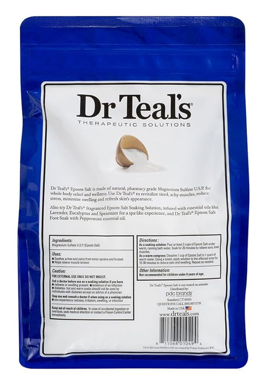 Dr Teals Pure Epsom Salt Therapeutic Soaking Solution, Unscented, 96 Oz. (Pack of 1) (Packaging May Vary)
