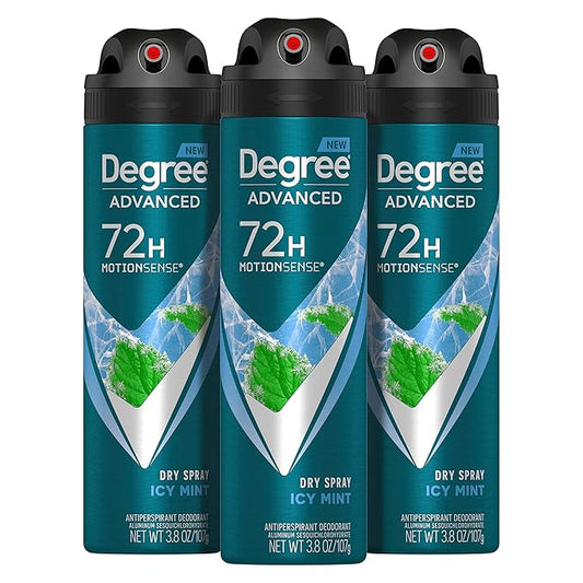 Degree Men Advanced Antiperspirant Deodorant Dry Spray Icy Mint 3 Count 72-Hour Sweat and Odor Protection Deodorant For Men With MotionSense Technology 3.8 oz