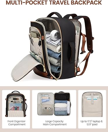 LOVEVOOK Travel Backpack for Women, 40L Carry On Backpack Flight Approved, Large Personal Item Bag Fits 17 inch Laptop, TSA Approved Luggage with 3 Packing Cubes,Waterproof Weekender Gym Daypack