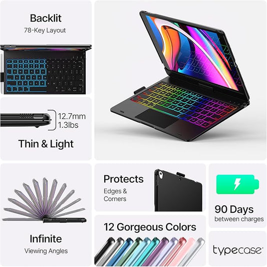 typecase Touch for iPad 9th Generation Case with Keyboard (10.2", 2021),Multi-touch Trackpad,10 Color Backlight, 360° Rotatable, Thin & Light for 8th Gen (2020),7th Gen (2019), Air 3,Pro 10.5 (Black).