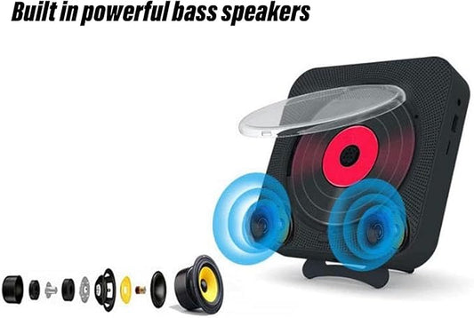 Portable CD Player, Bluetooth CD Player with Speakers 2 Modes Wall Mount Desktop Portable Home CD Music Player Rechargeable with Remote Control (Black)