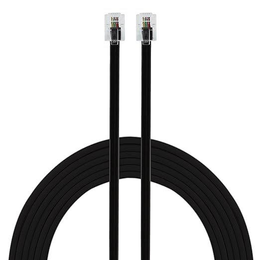 Power Gear Telephone Line Cord, 15 Feet, Phone Cord, Modular Jack Ends, Works for Phone, Modem or Fax Machine, for Use in Home or Office, Black, 76579