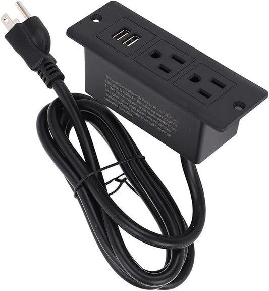 Recessed Power Strip Desktop 2 AC Outlets 2 USB Ports Embedded Design for Furniture Space Saving 1.5m Cord US Plug 125V for Furniture Installation (Black)