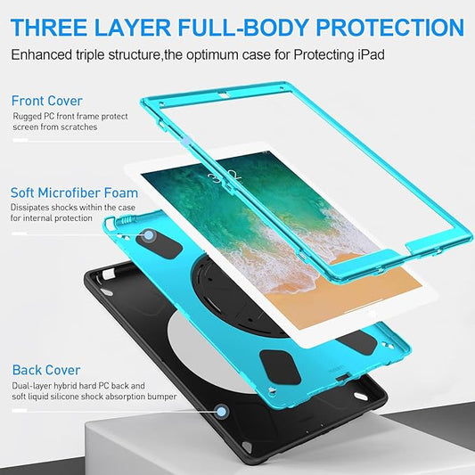 SUPFIVES Case iPad Pro 12.9 20152017: iPad 12.9 Inch 1st 2nd Generation Case Upgraded Military Grade Shockproof Silicone Protector with Pencil Holder Handle Shoulder Strap Rotating Stand, Green
