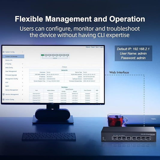 Binardat 8 Port 10 Gigabit SFP Managed Switch, Support 1G10G SFP Module, 160Gbps Bandwidth, WebCLI L3 Managed, Metal Fanless Fiber Desktop Network Switch