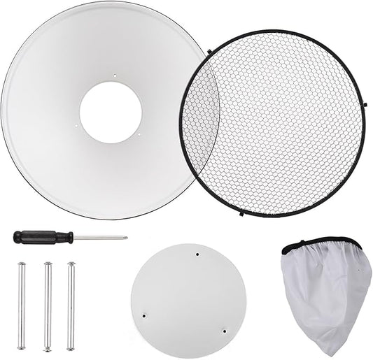 Andoer 30cm11.8in Standard Reflector Beauty Dish Bowens Mount with White Diffuser Reflector Honeycomb Grid for Studio Portrait Photography Strobe Flash Light