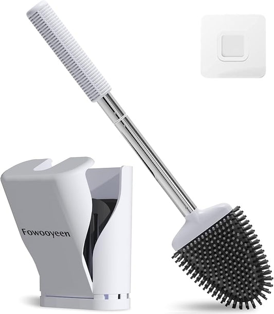 Fowooyeen Silicone Toilet Brush and Holder Set, Automatic Toilet Bowl Brushes with Ventilation Slots Base for Bathroom Cream