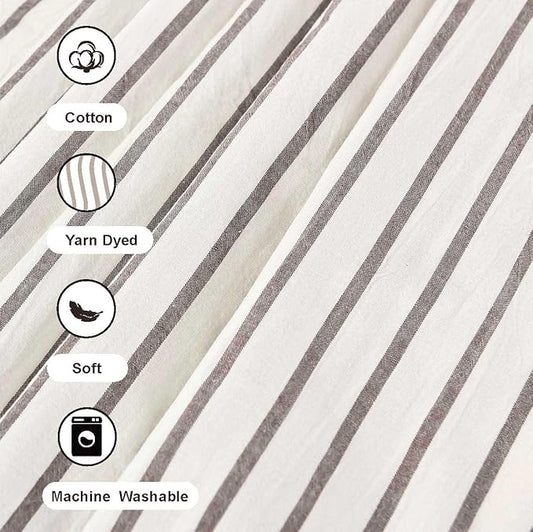Farmhouse Shower Curtain,Beige and Brown Striped,Button Curtain,Spa Waffle and Cotton Woven Fabric,Rustic Charm Country Chic Style,72x72 in