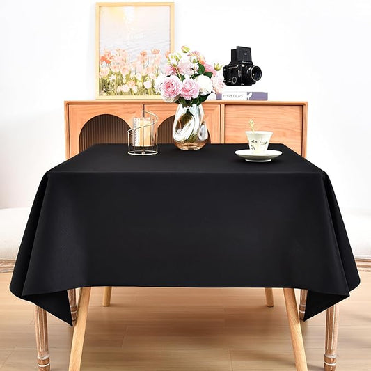 eeivs Square Tablecloth 52 x 52 Inch Washable Polyester Table Cloth Solid Black Heavy Duty Fabric Table Cover Daily Use for Dining Home Kitchen Party Wedding