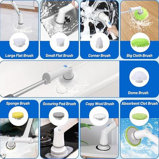Electric Spin Scrubber Cordless BestMal 9 in 1 Tornado Scrub Shower Scrubber Power Scrubber for Cleaning Electric Scrubber for Cleaning Shower Brush Electric Grout Scrubber Bathroom Cleaning Tools