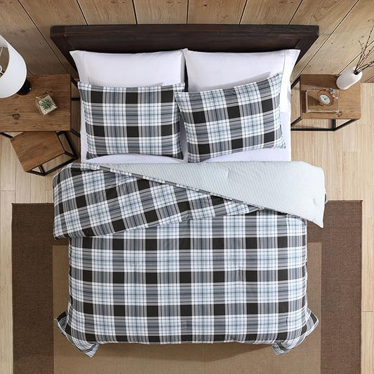 Eddie Bauer - King Comforter Set, Cotton Reversible Bedding with Matching Shams, Stylish Home Decor (Lewis Navy, King)