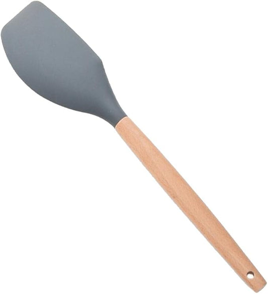 1pc Blue Silicone Spoon Flexible Spatula Set with Wooden Handle, Heat Resistant Rubber Scraper, Non-stick Ideal Cookware for Cooking, Baking and Mixing.