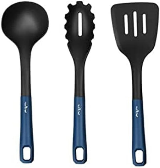 NutriChef NutriChefKitchen Kitchen Nylon Cooking Utensils Set, Includes Soup Ladle, Pasta Fork, and Spatula, Works with Models: NCCW14SBLU & NCCW20SBLU-NutriChef NCCW14SBLUUTENS