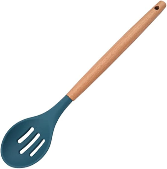 1pc Blue Silicone Slotted Spoons Cooking Large Serving Spoon, Heat Resistant Cooking Utensils for Kitchen Cooking Baking Stirring Mixing Tools