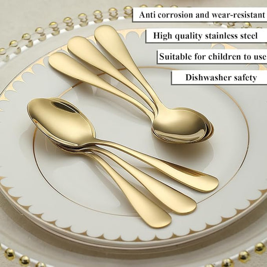 Gold Teaspoons Set of 12, Stainless Steel Dessert Spoons, Coffee Spoon, Stirring Spoon, Latte Spoon for Home, Restaurant, Hotel, Wedding, Event, Parties