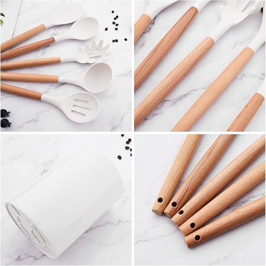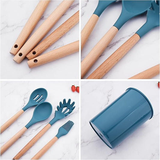 Premium Silicone Kitchen Utensil Set - Essential Tools for Cooking and Serving