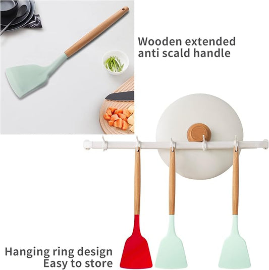 Silicone Solid Spatula with Wooden Handle, Heat Resistant and Non Stick Cooking Utensil, Kitchen Turner for Frying, Baking, Flipping, Mixing, Serving, Draining, Stirring (light green)