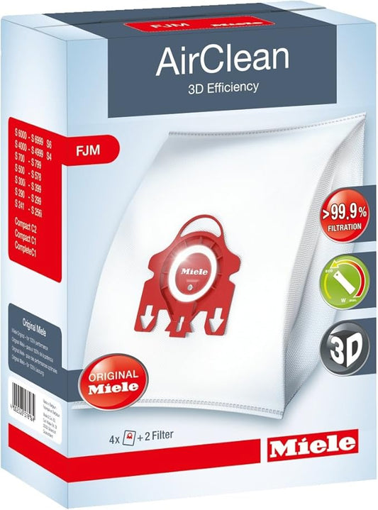 Miele AirClean 3D Efficiency Dust Bag, Type FJM, 4 Bags & 2 Filters, White