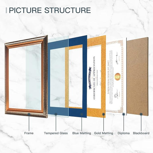 XUANLUO 11x14 Picture Frames Certificate Document Frame with Tempered Glass Wood Grain Color Diploma Frames 8.5x11 with Blue Mat for Wall and Tabletop Brown 1Pack