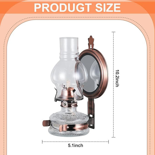 2 Pieces Large Wall Oil Lamp Vintage Glass Kerosene Lamp 7/8 Wick Antique Decorative Wall Mounted Oil Lamps for Indoor Use Emergency Lighting Hurricane Lamp with Mirror Oil Lantern