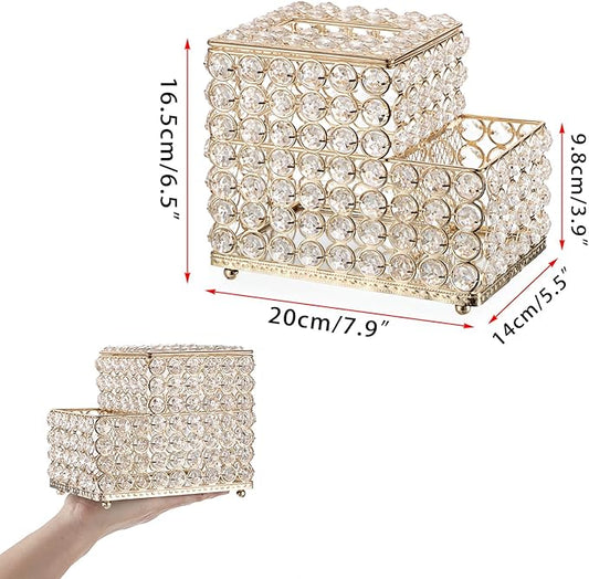 Sumnacon Square Crystal Tissue Box Cover -Sparkling Cube Tissue Box with Side Organizer,Decorative Tissue Holder for Living Room Vanity Night Stand Desk Countertop Office, Gold