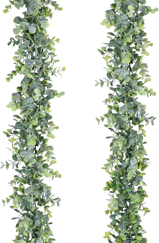 Lvydec 2 Pack Artificial Eucalyptus Garland, Fake Eucalyptus Greenery Garland Wedding Backdrop Arch Wall Decor, 5.5 Feet/Strand Fake Hanging Plant for Table Festival Party Decoration