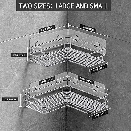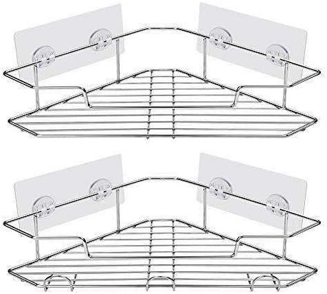 Nieifi Corner Shower Shelves Stainless Steel, Adhesive Shower Caddy Basket Rack with Hooks, Rust Proof for Bathroom Shelf Shampoo Holder (Silver, 2 Pack)