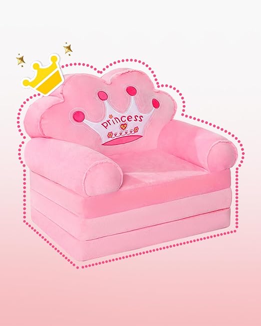 MOONBEEKI Kids Foldable Sofa Bed, Princess Chair for Toddlers 1-3, Pink Cartoon Shape, High Density Foam, Fold Out Couch for Bedroom, Sofa Bed for Girls, 15.1x19.7x2.4 inches, 4.4 lbs