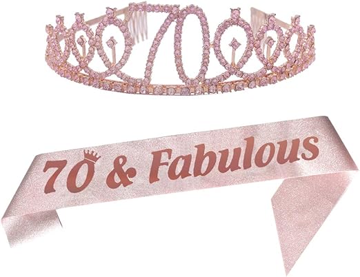 70th Pink Birthday Tiara and Sash Happy 70th Birthday Party Supplies 70th Pink Birthday Glitter Satin Sash and Crystal Tiara Princess Birthday Crown for Girls 70th Birthday Party Decorations