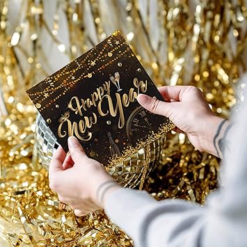 New Years Eve Napkins-40pcs Happy New Year Decoration 2025 Set happy new year napkins Black and Gold Paper Napkins for 2025 New Year Party Supplies