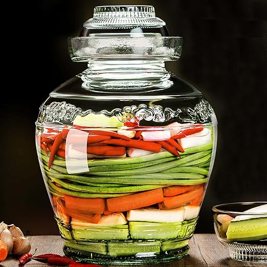 Vencer 2.5 Liter Traditional Glass Fermenting Jar With Lid and Pressure stone,Glass Fermentation Tank for Pickling Kimchi Sauerkraut,VHF-007