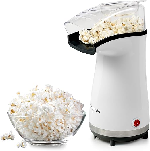 Nostalgia 16 Cup Hot Air Popcorn Maker | Makes Hot, Healthy Popcorn, No Oil Needed | Measuring Cap for Kernels Included | Stainless Steel |White